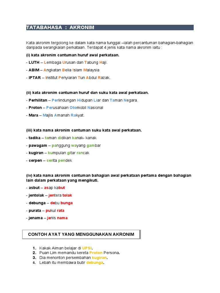 Dalam iii Kata nama akronim pembentukan Contoh. Akronim terakhir ini terbentuk lebih dari lima kata. Bina ayat yang sesuai menggunakan akronim dibawah Contoh.